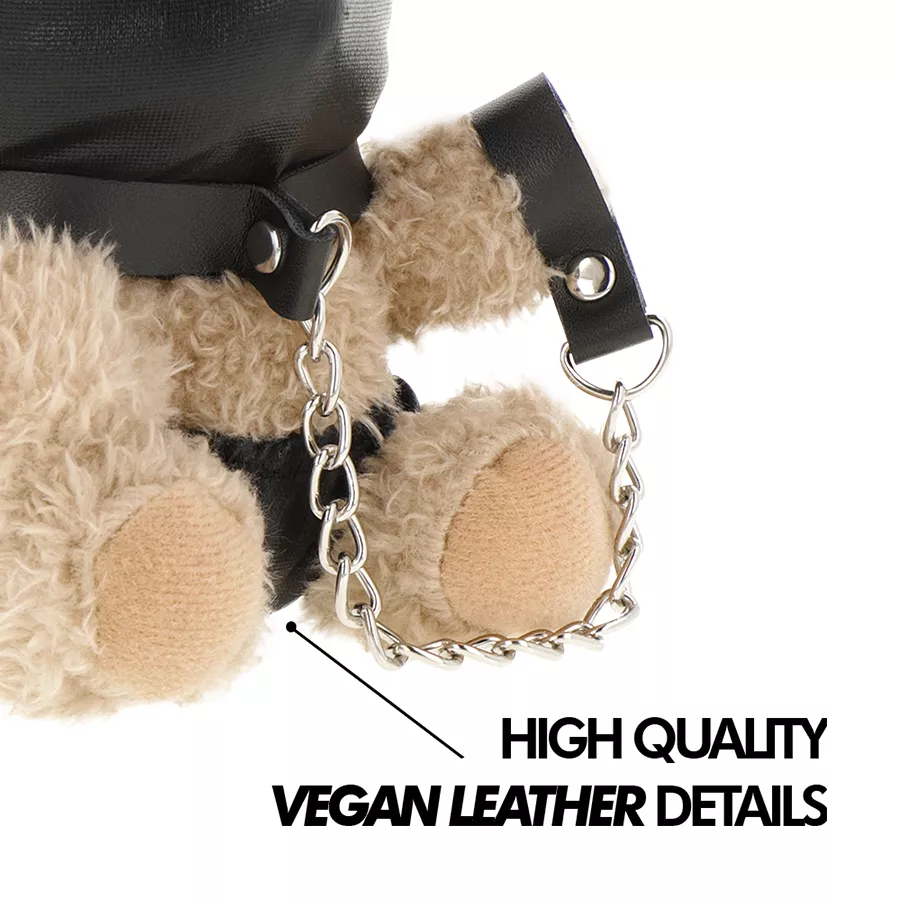 Chaque ours en peluche est fabriqué avec des matériaux de haute qualité et affiche un look à la fois mignon et rebelle. Ses détails et accessoires évoquent un style provocateur, alliant douceur et audace. Les harnais, faits de cuir souple et de lanières de dentelle, épousent parfaitement leur silhouette menue. Ils portent des masques qui couvrent une partie de leur visage, leur conférant un air mystérieux et charmant. Les bâillons, aux couleurs vives, ajoutent une touche d'audace et de fantaisie, tandis que de petites chaînes s'enroulent autour de leur corps en peluche, apportant texture et effet visuel saisissant.