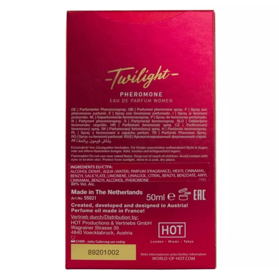 Alcool dénaturé, Aqua (eau), Parfum (fragrance), Hexyl cinnamal, Salicylate de benzyle, Limonène, Linalol, Citral, Benzoate de benzyle, Amyl cinnamal, Alcool benzylique, Géraniol, Farnésol, Eugénol, Phéromone.