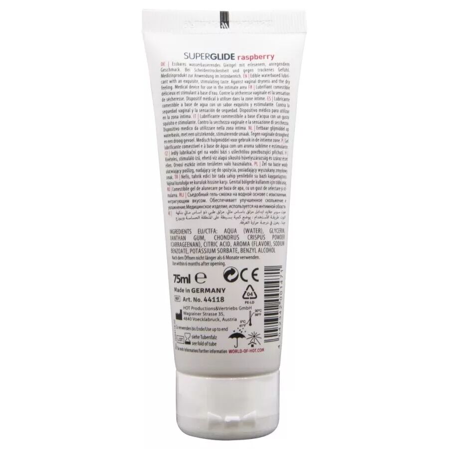 Un gel lubrifiant 100 % comestible ! Ce gel à base d'eau possède un délicieux arôme de framboise, conçu pour transformer vos moments les plus intimes en une expérience douce et irrésistible.