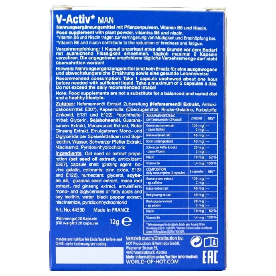 Grâce à leur formule soigneusement élaborée, ces capsules sont le compagnon idéal des hommes qui souhaitent stimuler leur énergie naturellement.