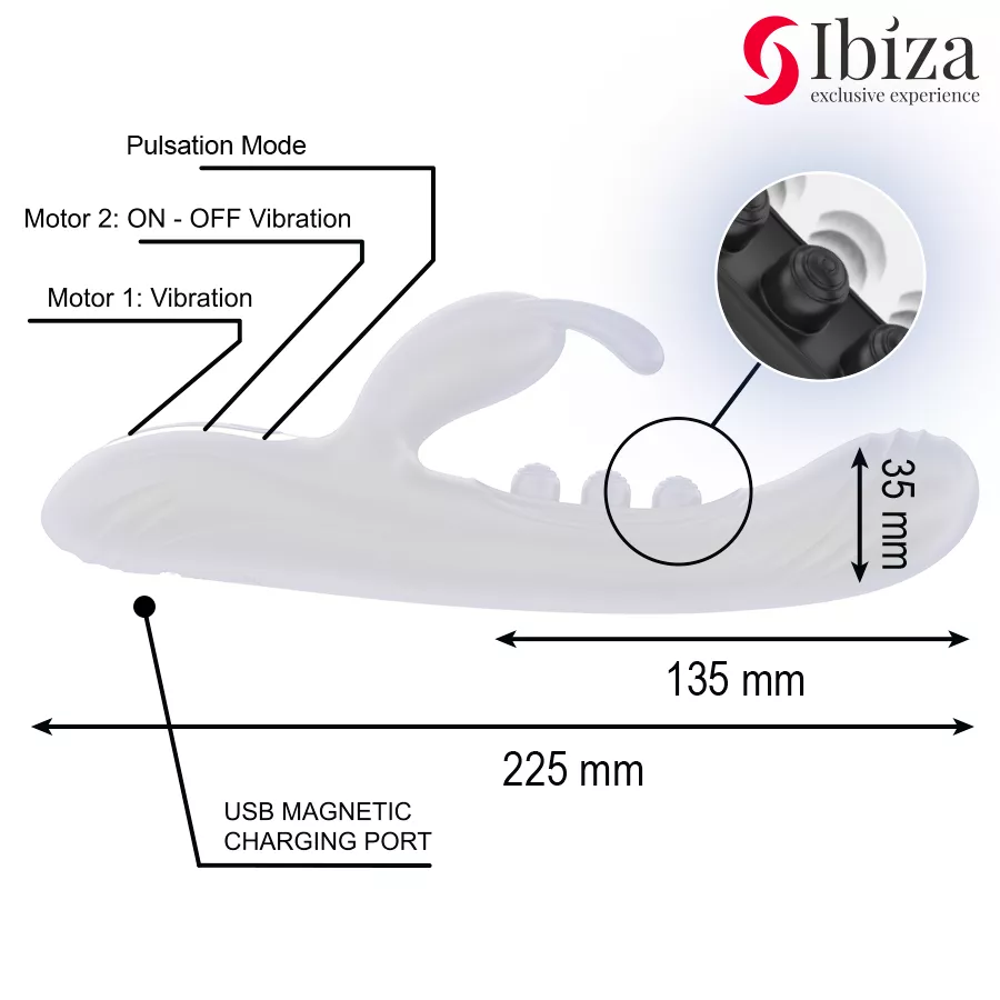Laissez-vous séduire par le design élégant et la puissance silencieuse du vibromasseur Rabbit Pulsant IBIZA , un bijou de technologie créé pour explorer le plaisir de manière personnalisée, profonde et totalement sûre. Conçu pour stimuler simultanément le point G et le clitoris, ce jouet allie le style emblématique du « rabbit » à des fonctionnalités innovantes qui vous feront vibrer – littéralement – dès la première utilisation.