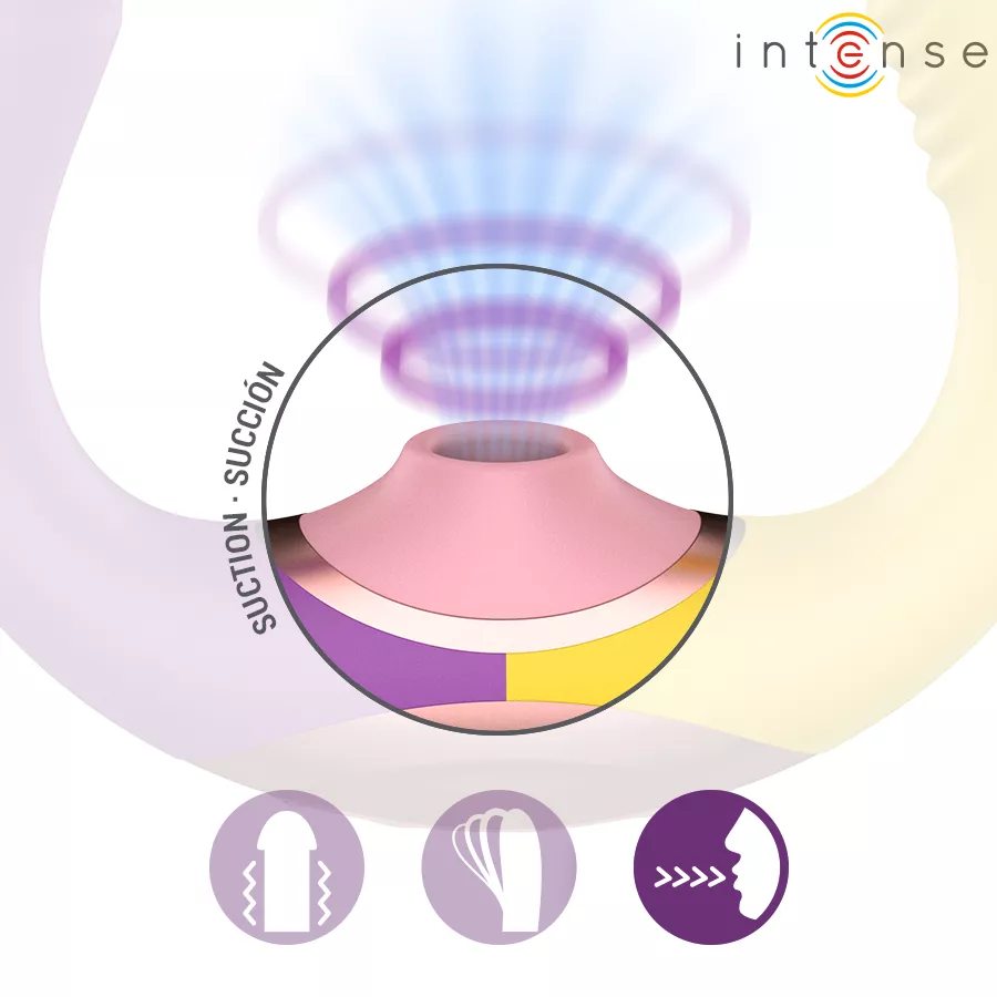 Ce stimulateur multifonction 3 en 1, combinant succion et vibration, a été conçu pour être l'allié idéal du bien-être intime, encourageant chacun à se reconnecter à son corps et à ses désirs. Son design ergonomique en forme de U se distingue non seulement par son esthétique moderne et dynamique, mais aussi par sa capacité à intensifier le plaisir grâce à une triple stimulation simultanée des zones les plus sensibles.