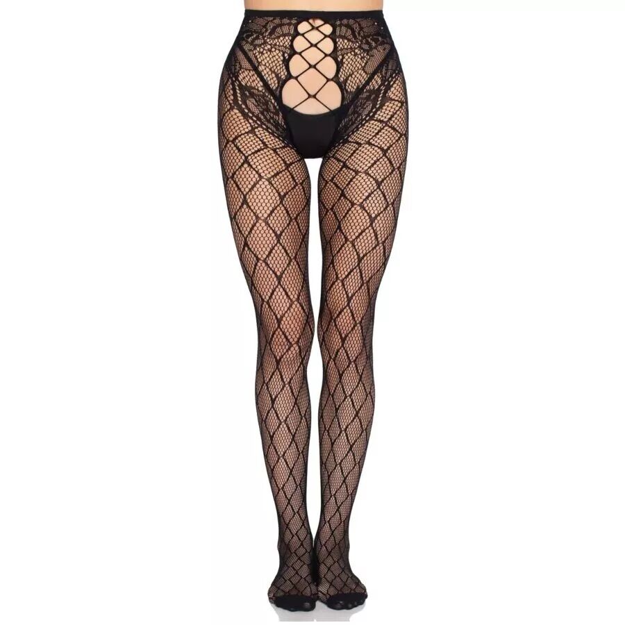 Ces collants résille séduisants présentent une fine maille ornée d'élégants détails en dentelle aux hanches et à la taille. La taille haute affine la silhouette, tandis que les découpes à l'arrière et à l'entrejambe apportent une touche audacieuse et sensuelle. Le tissu doux et extensible assure un confort optimal.