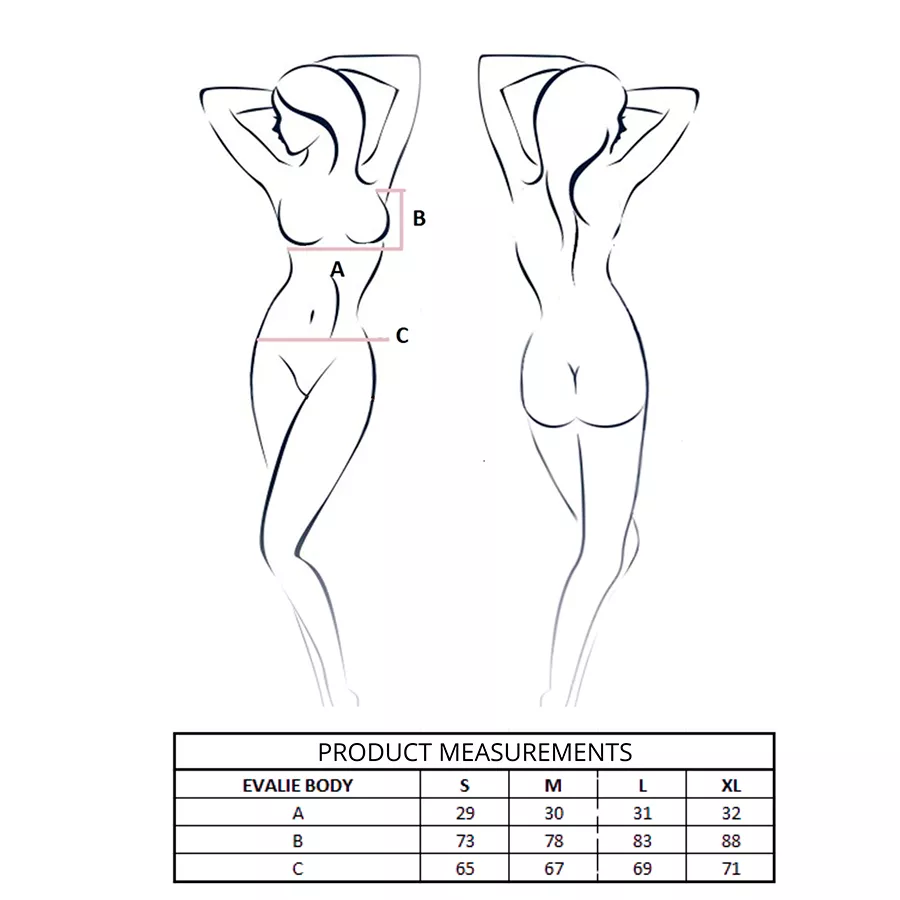 Le body EVALIE incarne l'élégance et la sensualité féminines. Confectionné dans une alliance raffinée de dentelle délicate et de tissu doux et extensible, il allie sophistication et minimalisme moderne. Son décolleté en V profond, orné d'une dentelle raffinée, sublime la poitrine et allie légèreté à la silhouette. Les empiècements transparents sur le devant apportent une touche d'audace, tandis que le dessous souple assure un ajustement et un confort irréprochables.