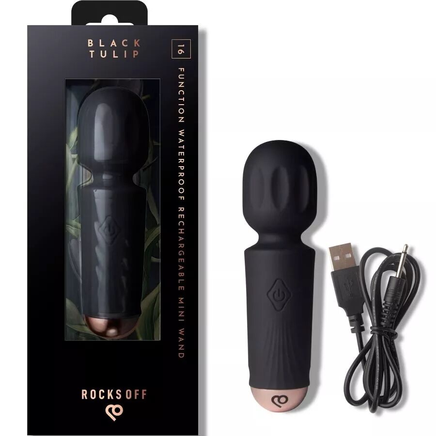ROCKS-OFF - MINI BAGUETTE RECHARGEABLE 16 FONCTIONS TULIPE NOIRE