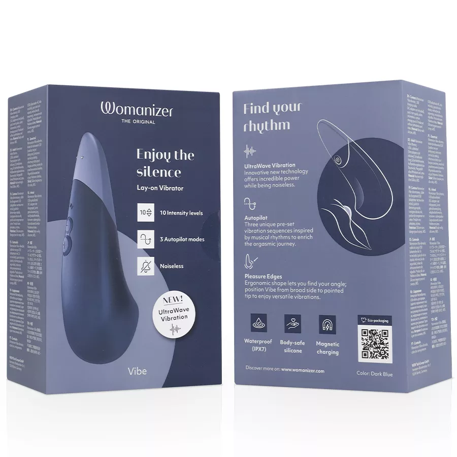 WOMANIZER - VIBE LAY-ON VIBRATEUR SILENCIEUX BLEU FONCÉ
